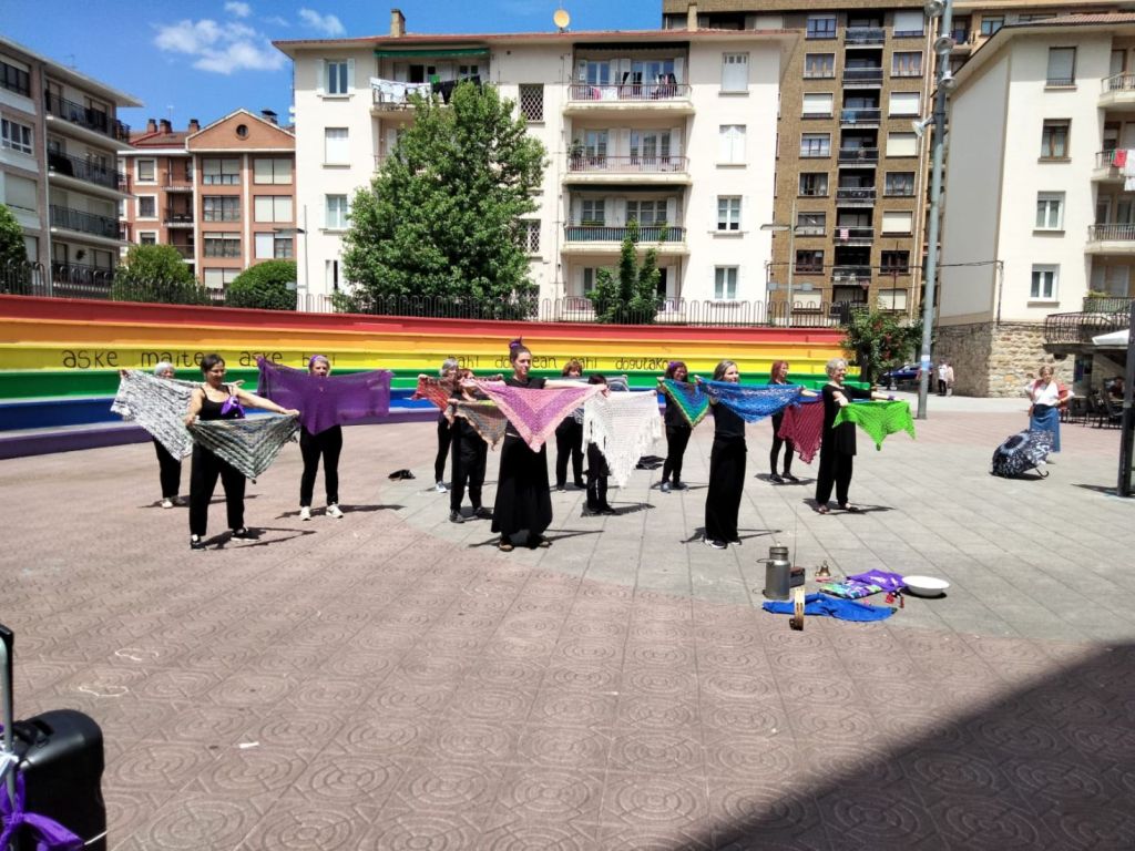 Las mujeres de Erabide Emakume Elkartea han querido crear y compartir un pequeño bertso -discurso realizado cantando, rimando y midiendo- en euskera sobre su experiencia y participación en el proyecto. Así han demostrado otra forma de hacer artivismo, además del muralismo y el teatro de calle.